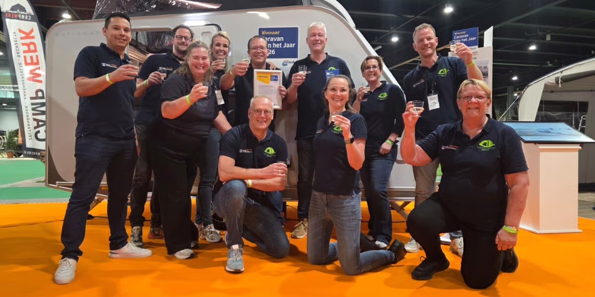 We zijn ongelooflijk trots om te mogen delen dat onze GetAway is uitgeroepen tot ANWB Caravan van het Jaar 2026! Tijdens de Kampeer & Caravan Jaarbeurs in Utrecht reikte tv-presentator Sander Janson deze prestigieuze prijs aan ons uit. Een unicum: het is meer dan 20 jaar geleden dat een Nederlandse caravanfabrikant deze titel wist te winnen.