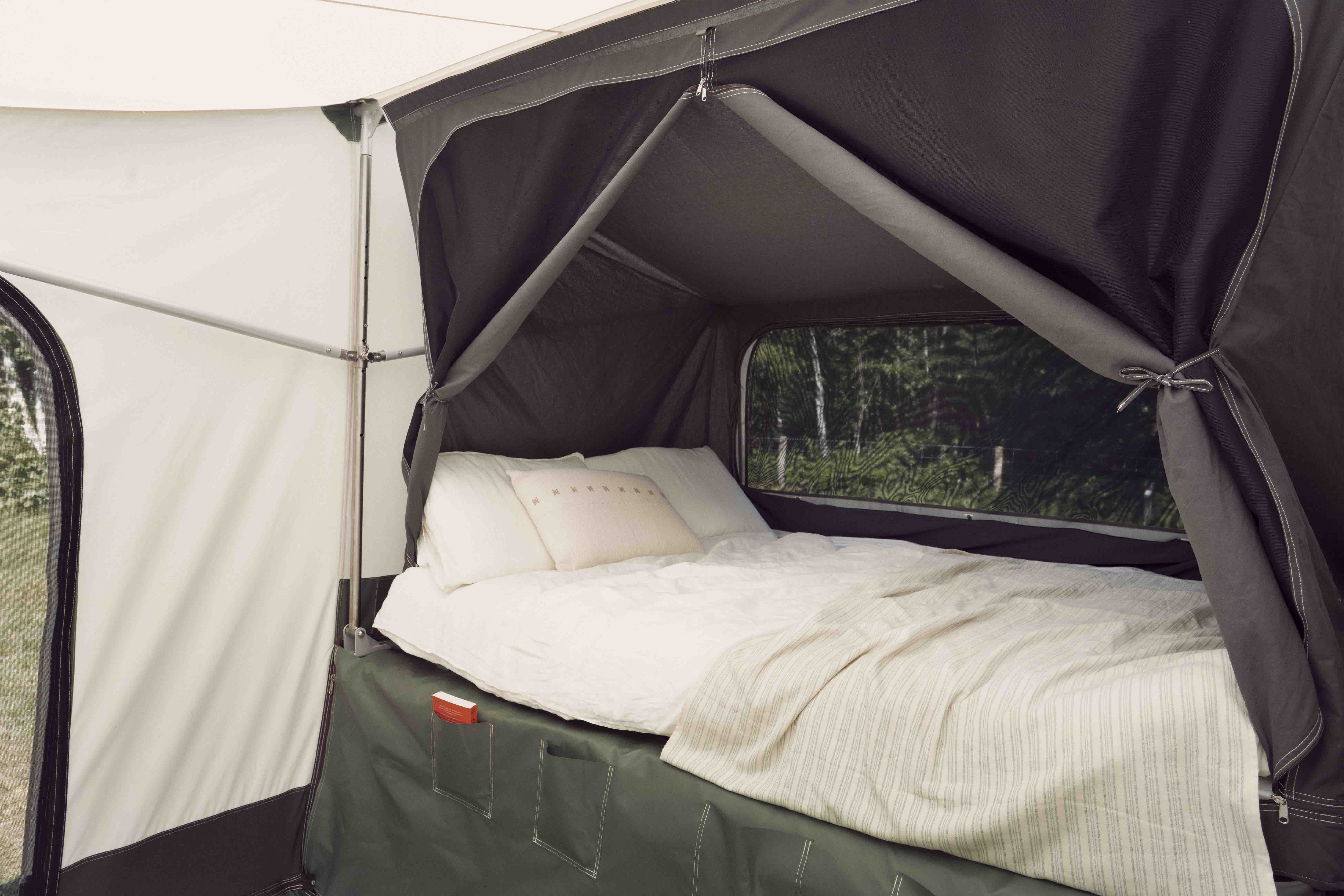 Ultiem slaapcomfort: De verduisterende binnentent zorgt voor optimale nachtrust, ook in de vroege ochtendzon. Het riante koudschuimmatras (155x210cm) op lattenbodem biedt slaapcomfort zoals thuis.